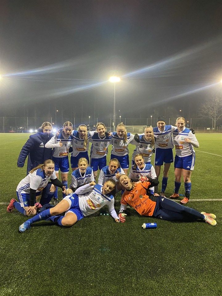 IFK kunde under kvällen vinna sin DM grupp och därmed gå vidare till slutspel, genom att besegra Stenstorps IF med 2-1. -riktigt kul att se att samtliga delar som vi "gnuggat" på under hela våren redan sitter, första halvlek är strålande, kommenterar tränare Hanna Boström. -i andra halvlek faller vi tillbaks lite samtidigt som Stenstorp flyttar fram, men efter 10 spelade minuter tar vi åter över matchen, analyser tränare Jonas Öhgren. Nu väntar en riktigt spännande uppgift, där första slutspelsmatchen bjuder på div 1 motståndet Vänersborg FK, ett lag som satsar stort med flera nyförvärv.-kan ju inte bli bättre, inte var dag man får möjlighet att spela sådana matcher, avslutar tränare Johan Dahlström.