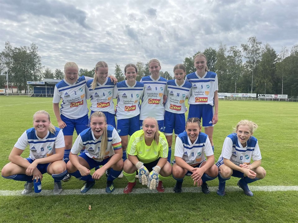 En strålande september dag med en fantastisk fotbollsplan och gott om förväntansfull publik, precis som det ska vara när fotboll är som bäst! Och saken blir ju inte sämre av att IFK Tidaholm bergar ytterligare tre poäng till sin samling och hakar på i toppen. Hur var då matchen? -vi har likt flertalet matcher stort bollinnehav, men har svårt att få till det sista tredjedelen, konstaterar tränare Hanna Boström som tillägger - att laget jobbar med detta på träningarna så det kommer släppa för eller senare, vi skapar ju ändå en massa fina lägen. Ledningsmålet kommer först efter vi förändrat lite i vår uppställning, och då till trebackslinje för att få lite mer folk i anfall, vilket Ida Swärd och Saga Lidén tar till vara, när Ida djupledspassar Saga som kommer före målvakten och rullar in ett 1-0. Gästerna Hjo kämpar och sliter och vi får verkligen jobba för bollinnehavet. Dagens delikatess bjuder lagkapten Linn Andersson på när hon skjuter in en frisspark från 25 meter rakt i krysset. -vi tapper väl lite skärpa när vi leder med 2-0 och lite onödigt bjuder in Hjo i matchen, när vi blir bolltittare vid en frispark, 2-1. -efter målet skärper vi till oss och kan väl kontrollerat slutföra 2-1 segern. -idag är det väl ingen som sticker ut, utan samtliga spelare gör ett bra jobb, avslutar Hanna Boström. Nu hoppas vi att skador och förkylningar går över till kommande vecka och borta match mot Hörnebo.