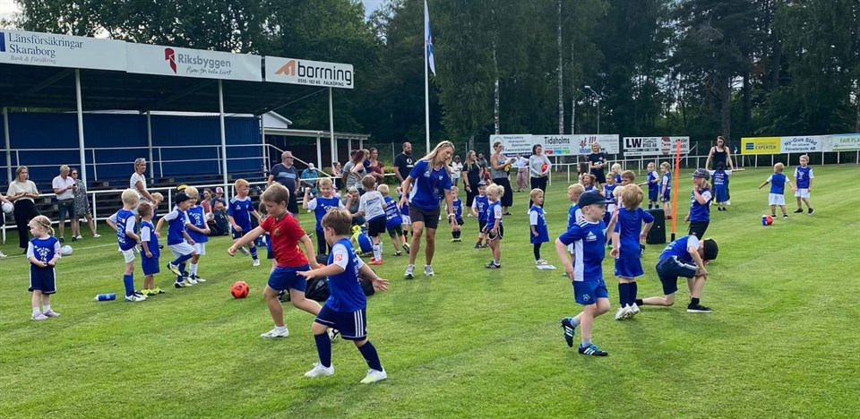 Vårat oerhört populära Boll&skoj har passerat 100 inskrivna barn i skrivande stund. Närmare bestämt 105st. Fantastiskt!!. Anna-Lena Sjöqvist och Sandra Bergström från Ungdomsgruppen är otroligt nöjda när vi får en pratstund med dom. Sandra och "Nani" fungerar som navet i denna stora grupp. Men för att få denna verksamhet att gå runt är det ytterligare ett tiotal ledare involverade. Med ett snitt på 75 barn varje Tisdag är det ett måste med många ledare. Allt har rullat på bra säger Sandra och vi har kunnat ha verksamheten igång från slutet på Maj. Alla ledare o föräldrar har gjort ett kanonjobb med organisationen runt omkring. All heder åt dom inflikar Nani. IFk passerade under våren över 300 aktiva barn och ca 60 ungdomsledare. Vi är i nuläget ca 320 registrerade barn/ ungdomar hälsar ordförande Hans Ramsin och vill passa på att tacka alla ideellt arbetande ledare för ett fantastiskt jobb. Utan er ingen förening så enkelt är det. Även underbart att se när ledare över laggränserna täcker upp för varandra när det saknas folk. Sånt skapar föreningskänsla säger Henrik Nilsson även han från Ungdomsgruppen. Nu rullar vi på dom sista veckorna av säsongen och kör mot nya segrar och en rejäl avslutningsfest. IFK går en ljus framtid till mötes.
