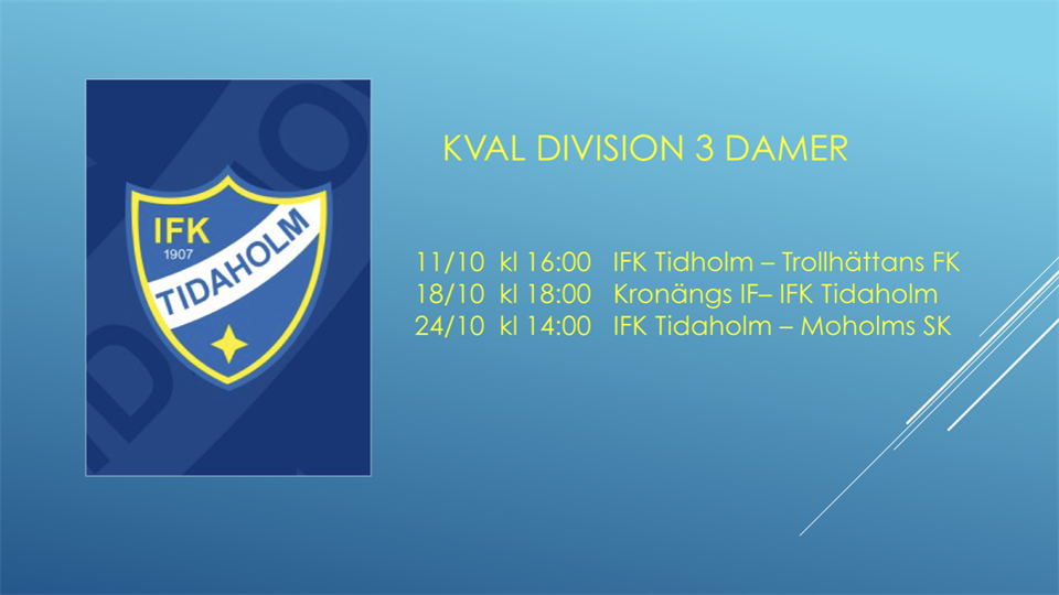 Likt förra året får IFK förlänga säsongen med kval. I år negativ nedflyttningskval. IFK avslutade serien med en stark 3-1 seger mot Råda. Ett Råda som var ett av de få lag som tog poäng mot seriesuveräna Värsås IF. Nu kör vi!