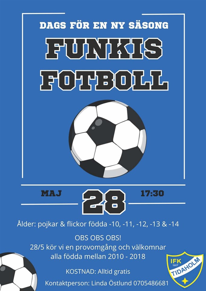 Onsdag 17.30 med start 28 maj är det dags för fotboll för pojkar och flickor med funkionsvariationer ⚽⚽⚽ Varmt välkomna till den blåvita gemenskapen! 💙